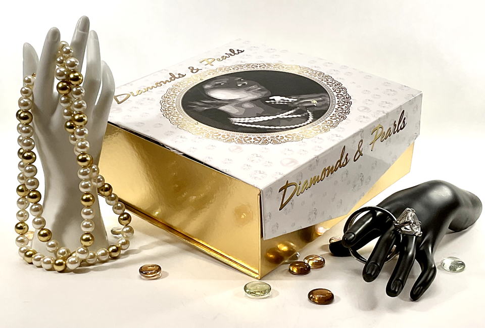 001 Diamonds & Pearls Gold Gift Box 9 x 9